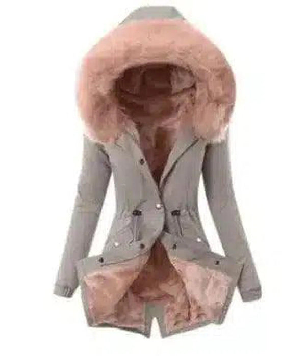 - Ausschnitt/Schulterform: Kapuzen-Design mit Kunstfell-Besatz