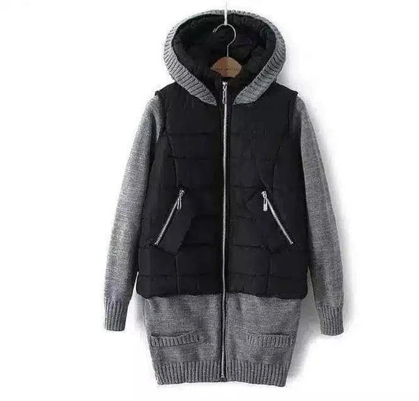 Gefütterte Jacke mit Kapuze und gestrickten Ärmeln