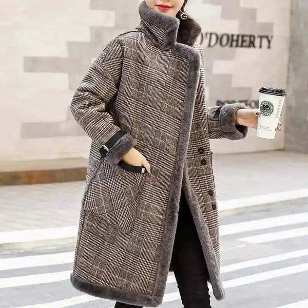 Koreanisches Temperament und dicker mittellanger Wollmantel aus Samt