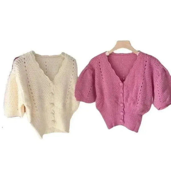 Strickcardigans mit kurzen Ärmeln und Knöpfen