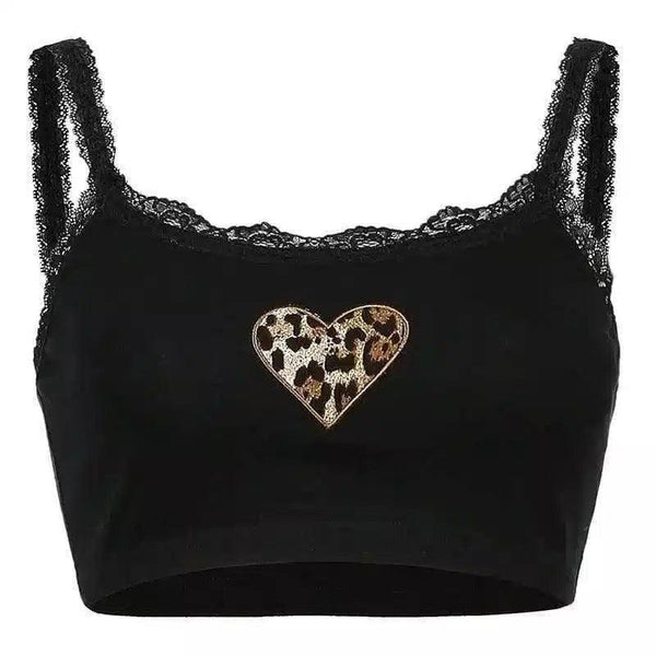 Spitzenbesetztes Crop-Top mit Herzmotiv