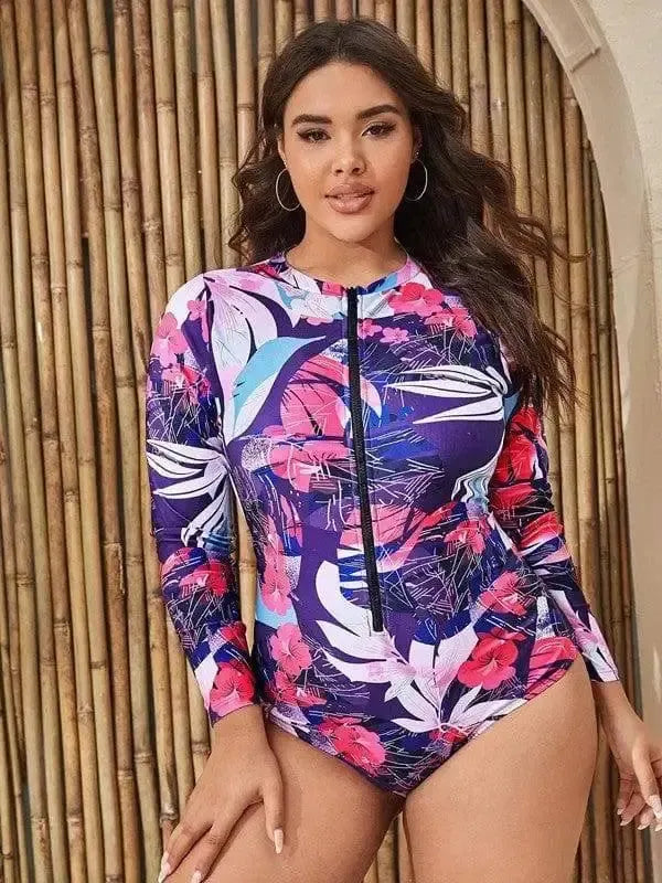 Produktbeschreibung: Damen Plus Size Einteiliger Badeanzug, langärmelig bedruckt