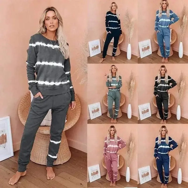 Langärmelige Hose Paar Gestreifte Tie-Dye Farbverlauf Schlafanzug