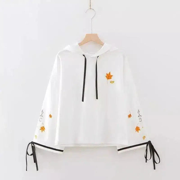 - Design Details: Gesticktes Herbstlaubmotiv auf Ärmeln und Brust