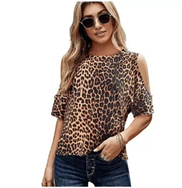 Damen Leopard Print Cold Shoulder Top