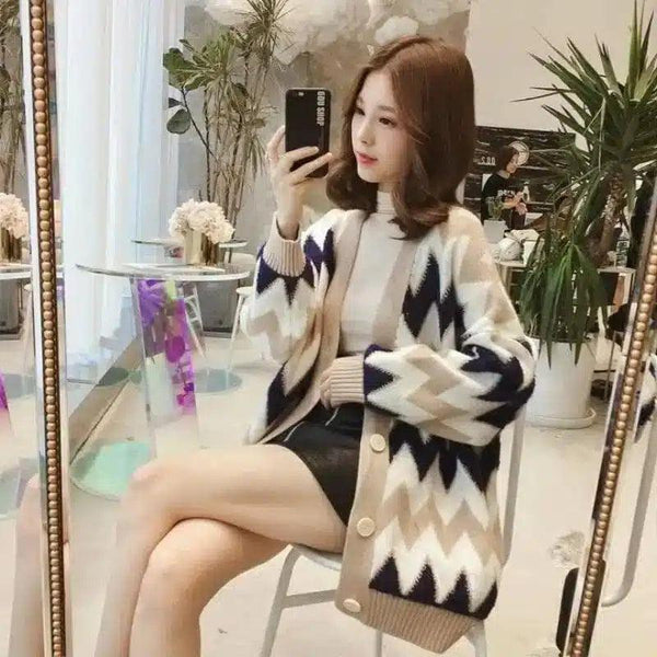 Zickzack-Strickjacke mit Knöpfen für Damen