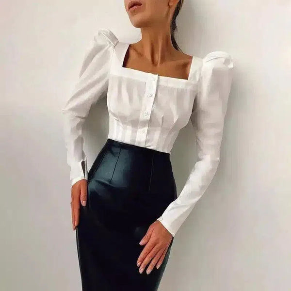 Bluse mit Puffärmeln und quadratischem Ausschnitt