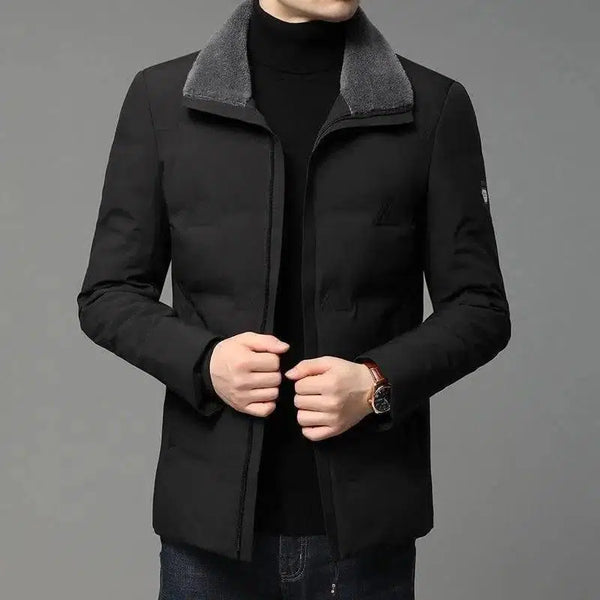 - Ausschnitt: Stehkragen mit kontrastierendem Innenfutter
