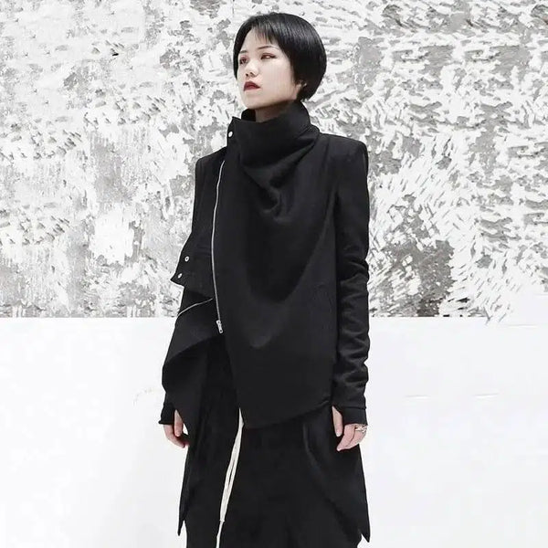 Rollkragenpullover Langarm Schwarzer Reißverschluss Unregelmäßiger Mantel