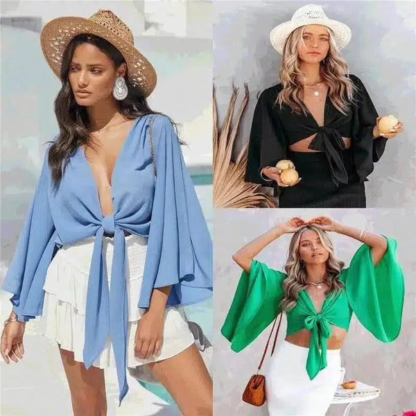 Damen-Krawattenfront-Crop-Top mit weiten Ärmeln