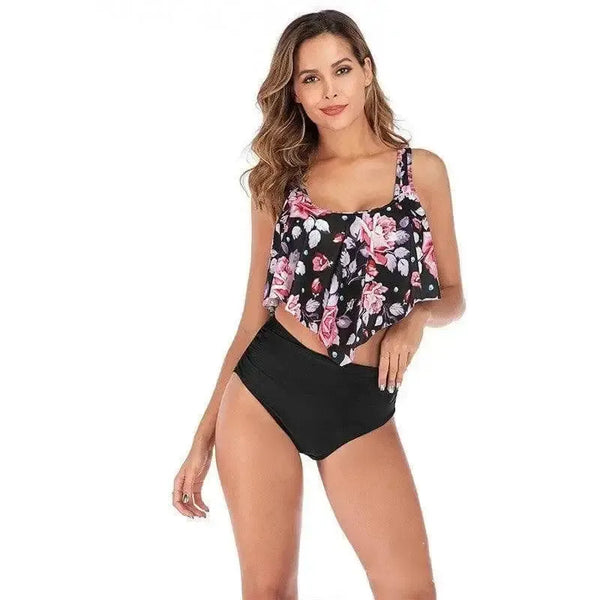 Produktbeschreibung: Split Swimsuit Women Printed High-Waist Bikini Ruffled