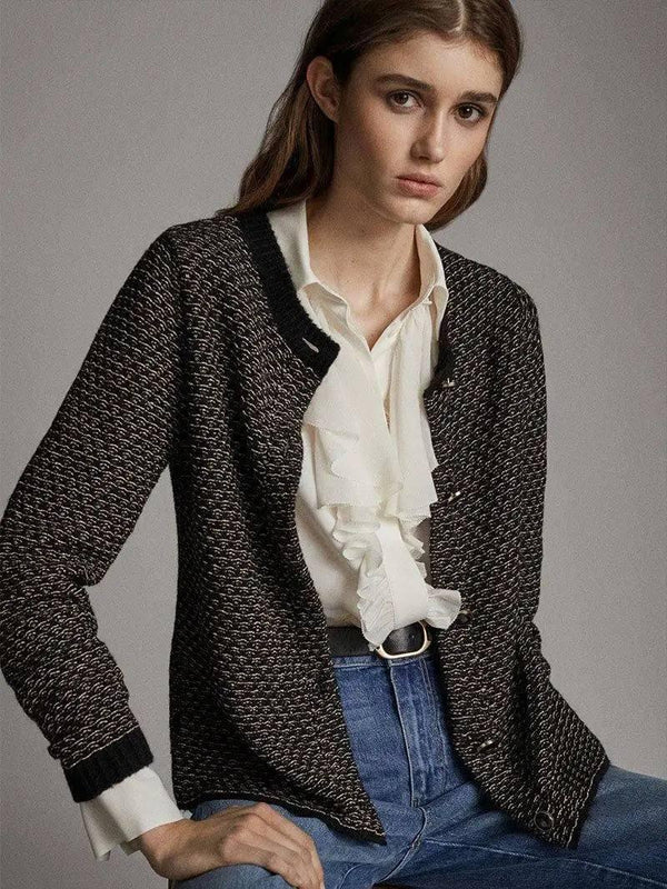 Schwarzer texturierter langärmeliger Strickmantel Kurzmantel