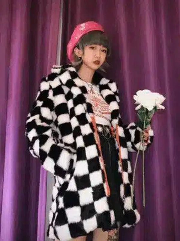 Schwarz-weiß karierte Knopfleiste in der langen Version von