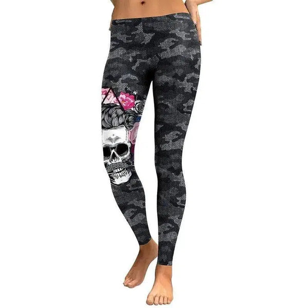 Leggings mit schwarzem Tarnmuster und Totenkopf