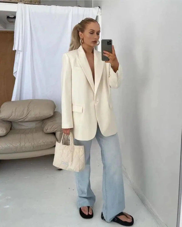 Maßgeschneiderter Blazer und weit geschnittene Jeans für Damen
