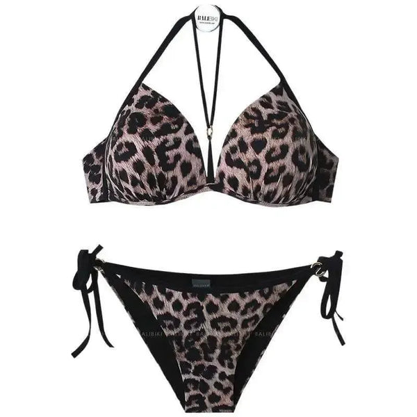 Produktbeschreibung: Leopard Bikini Drei-Punkt Kleine Brüste Gathered