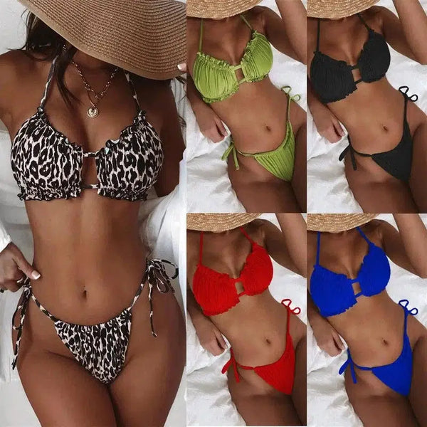 Bikini mit geteilter fester Farbe und niedriger Taille