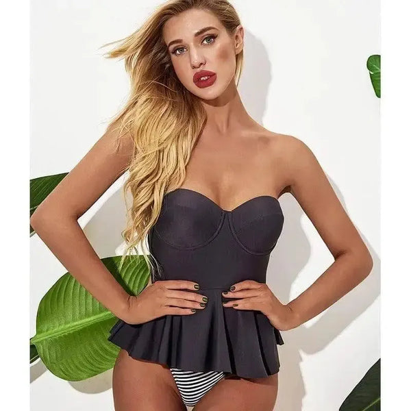 Triangle Tube Top Faltenrock Split Badeanzug Frauen