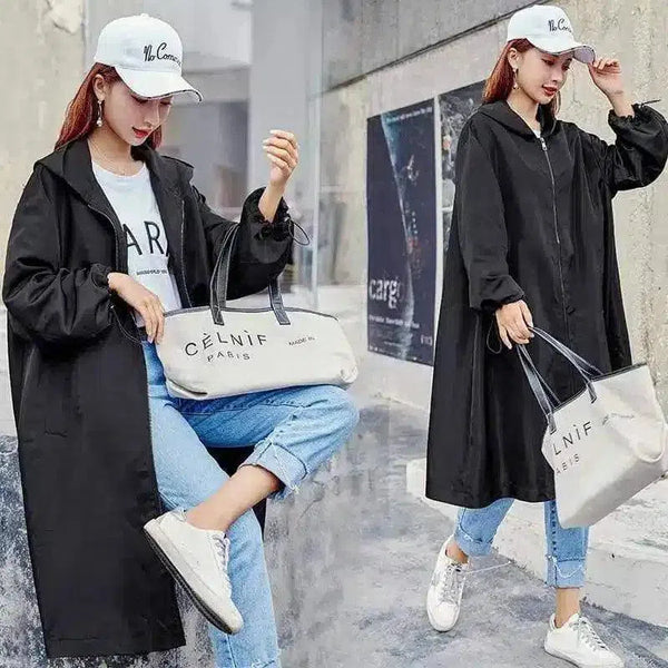 Lässiger langer Trenchcoat mit Kapuze für Damen