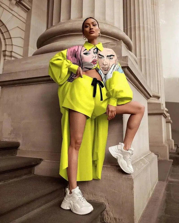 - Zusätzliche Details: Grafisches Design auf der Vorderseite, geteilter Saum, der in eine High-Low-Silhouette übergeht