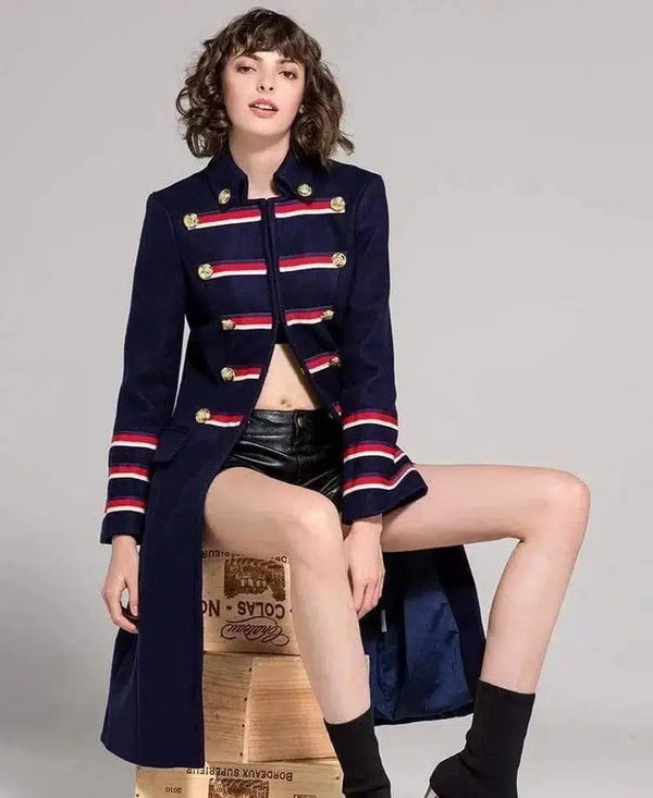 Vintage Mode Gestreifte Metallknöpfe Blau Punk/Militär Lang