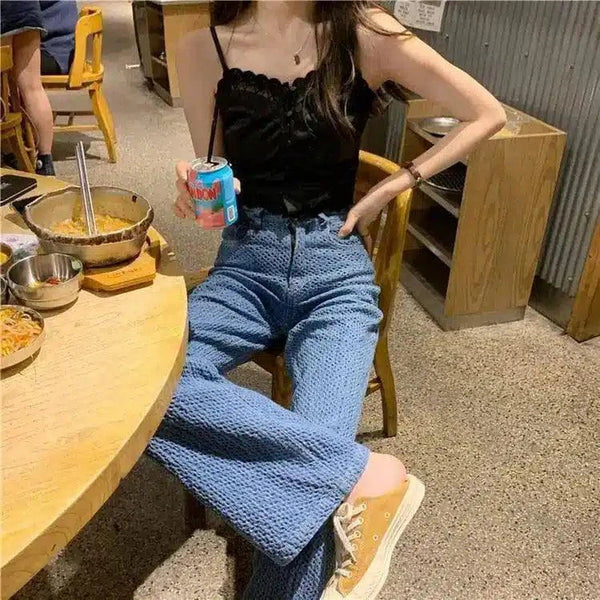 Texturierte Freizeithose mit hoher Taille für Frauen