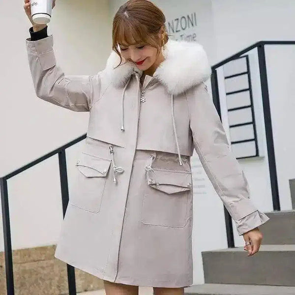 Damen Kunstfellkragen Wintermantel mit Taschen