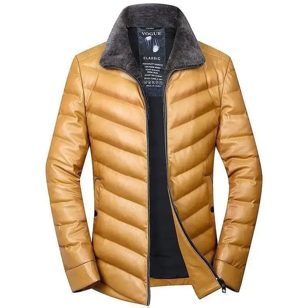 Wollkragen Jugend Herren Leder Daunenjacke kurz warm Daunen