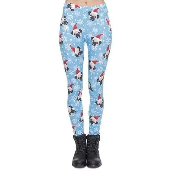Zohra Hohe Elastizität Frauen Legging Santa Pug Druck blau