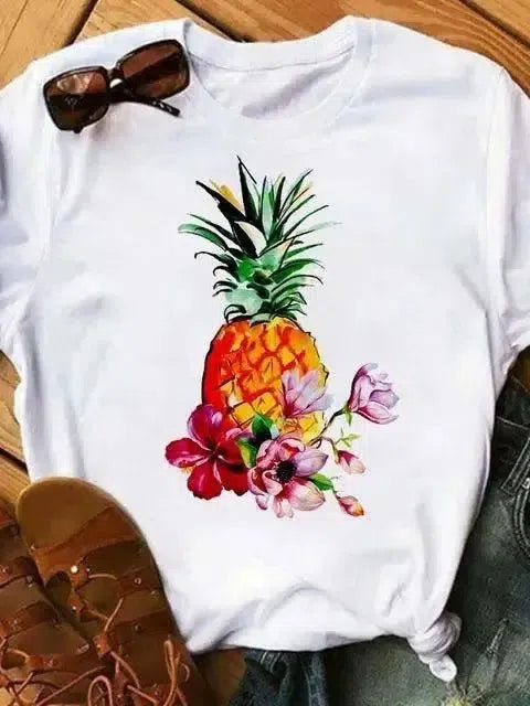 Sommer-T-Shirt mit Ananas-O-Ausschnitt