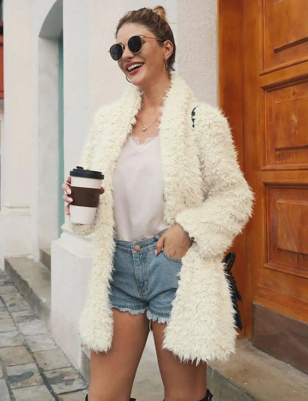 Mittellange Jacke aus Kunstpelz mit langen Ärmeln