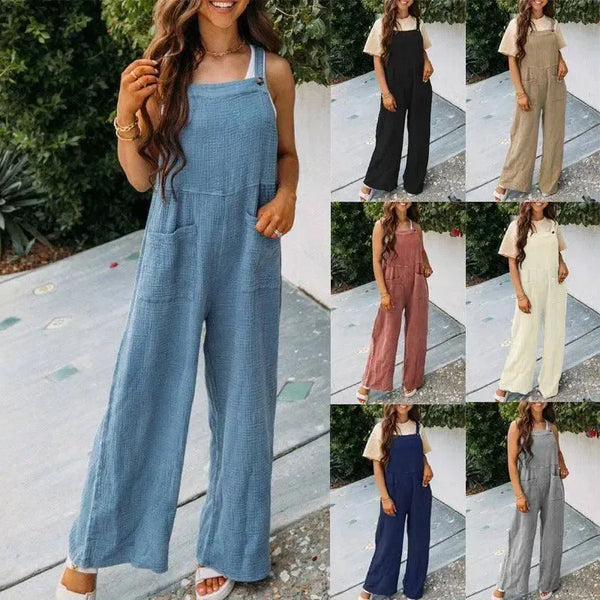 Mode Quadratischer Ausschnitt Jumpsuit Mit Taschen Frühling Sommer Lässige Solide Farbe Lose Overalls Damen Kleidung