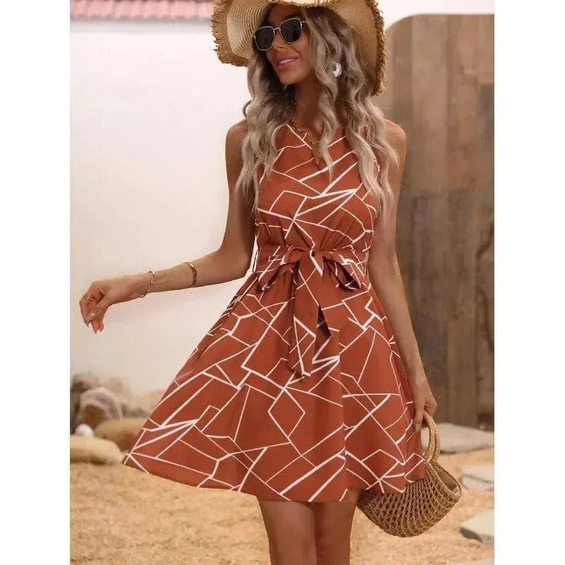 - Stil: Ärmelloses Damenkleid mit trendigem Druckdesign