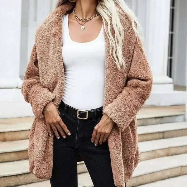 Brauner Plüsch-Cardigan Langarm Trendy Doppelseitig