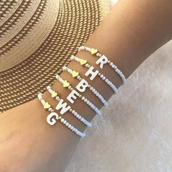 26 Buchstaben Weiß Shell Beaded Armband Frauen Metall Love Design Armband Schmuck