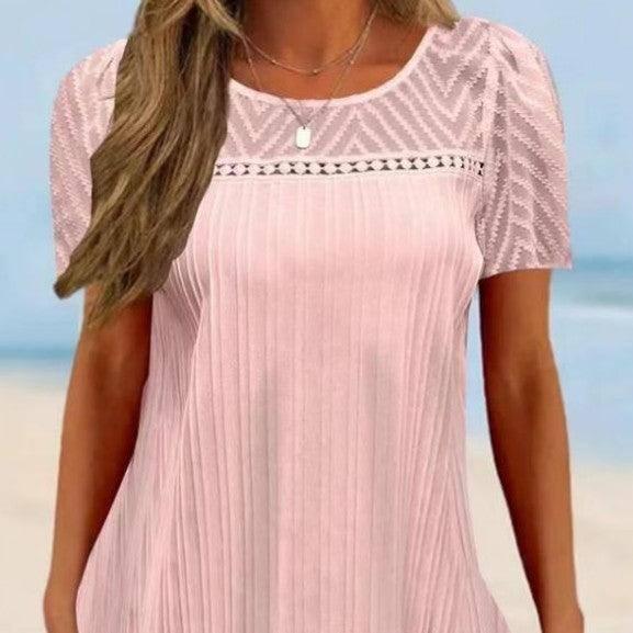 Pullover Rundhals-Spitzen-Patchwork-Kurzarm-T-Shirt