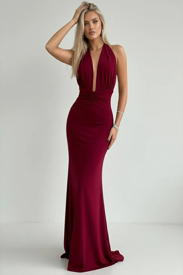 👉 Make a grand entrance — shop the LOVEMI Red Halter Evening Gown now