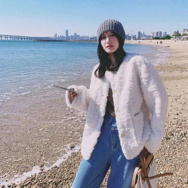 Rundhalsausschnitt Metallschnalle Kaninchen Pelzmantel Frauen