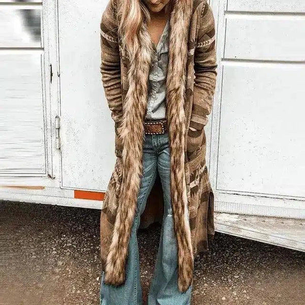 Langärmeliger bedruckter langer Mantel