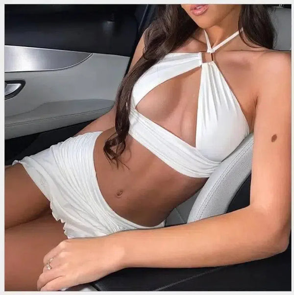 Crop Top Mini Röcke Zweiteilige Sets Frauen Halter Top