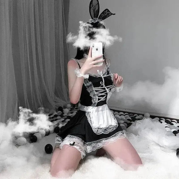 Dienstmädchen-Outfit mit Kaninchenohren Dienstmädchen-Dessous