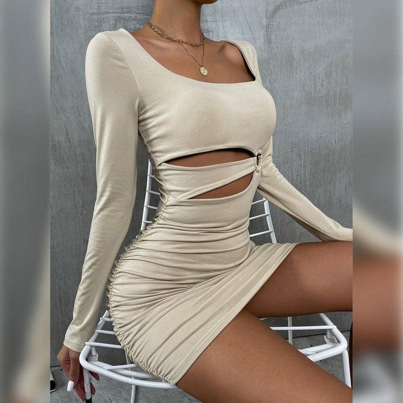 Langärmeliges Kleid mit quadratischem Ausschnitt