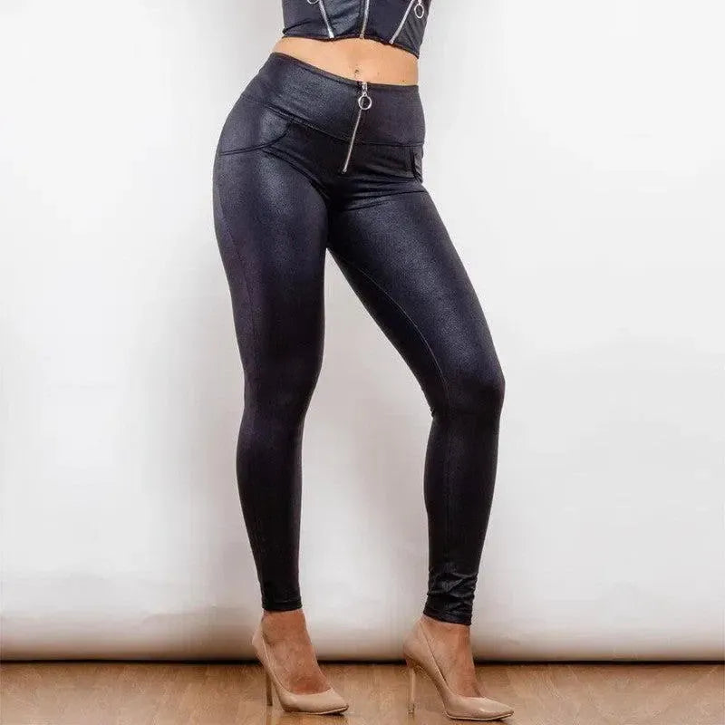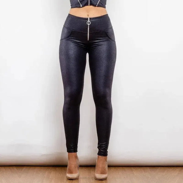 Shascullfites Melody Hohe Taille Crackle Schwarz Beschichtet Lifting