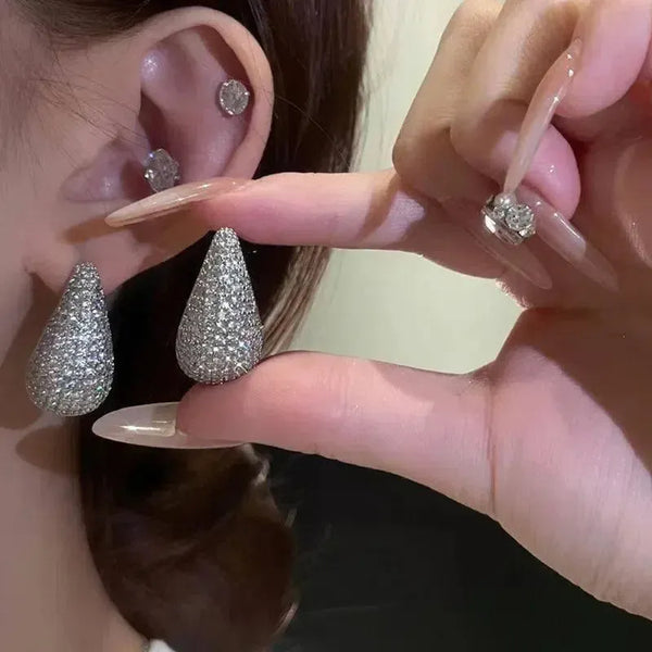Mode-Schmuck Vintage klobige Kuppel Tropfen Ohrringe für Frauen glänzend Edelstahl dick Zirkon eingelegt Teardrop Ohrring Ohrringe Frauen