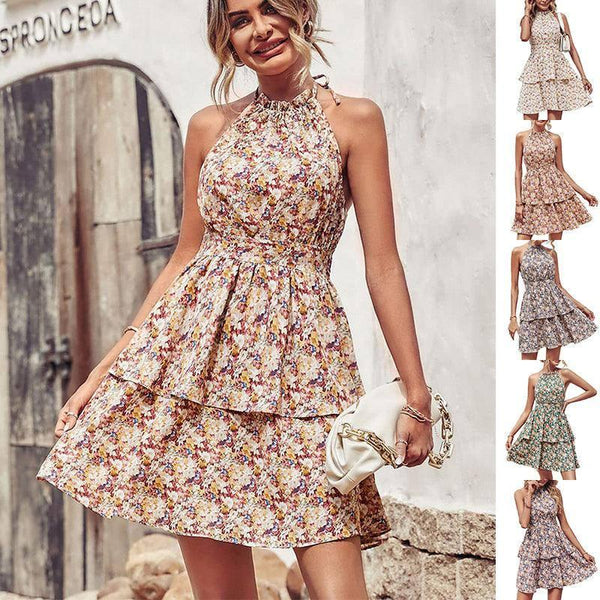 Sommer Bedrucktes Halterkleid Fashion Boho Rückenfrei Gerafft