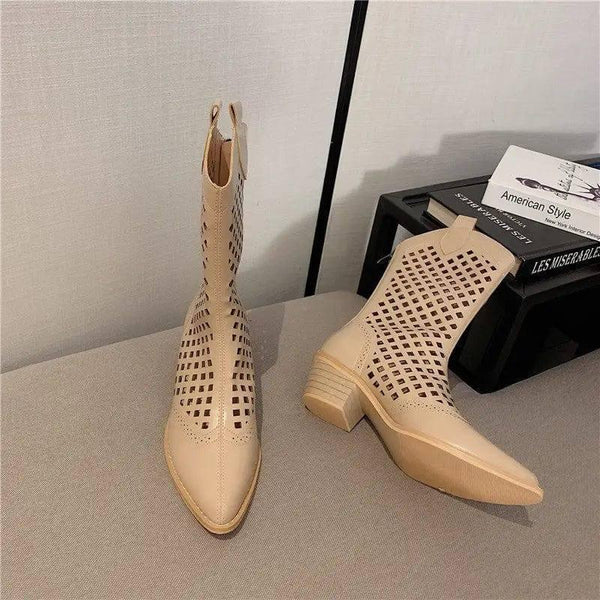Pointed Western Cowboy Stiefel Frauen dünn hohl Ritter dick