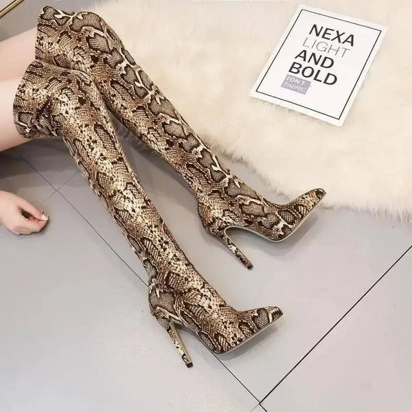 Spitze Druck Stiletto Heel über das Knie Stretch Stiefel