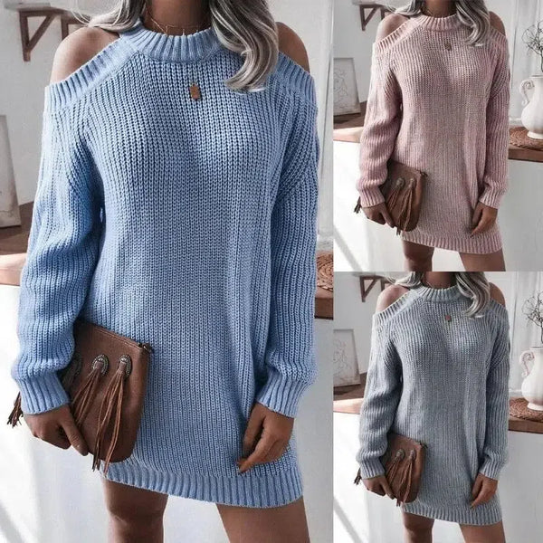 Strickwaren College Pullover Pullover für Frauen Lang Blau Grau