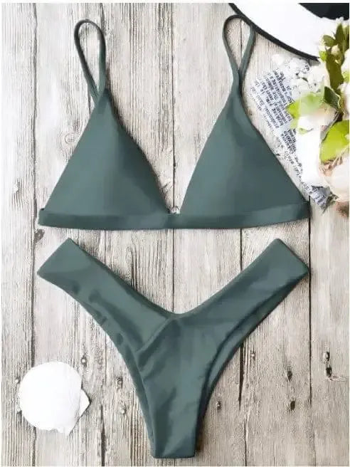 Schickes Olivgrünes Triangel-Bikini-Set für Frauen - Bademode Essentials