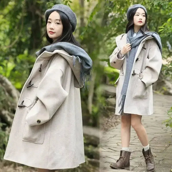 Tweedmantel mit Umhang und Knöpfen